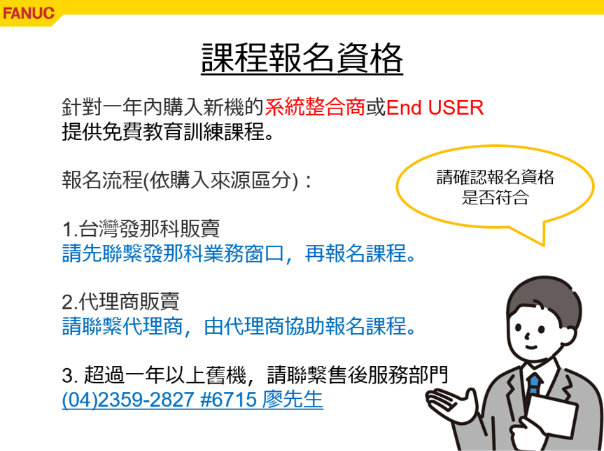 2. 台灣發那科保有變更、取消上課人數之權利。